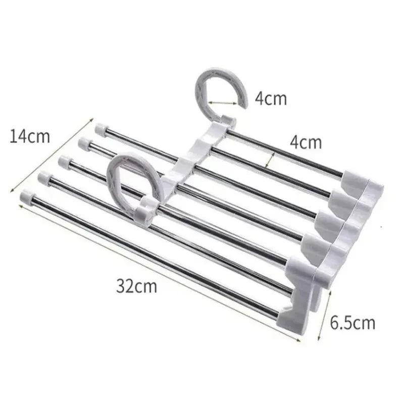 De multifunctionele hanger biedt meerdere lagen om je kleding te organiseren. Hierdoor bespaar je ruimte en kun je meer kleding ophangen zonder dat het rommelig wordt. Ideaal voor een georganiseerde kast.